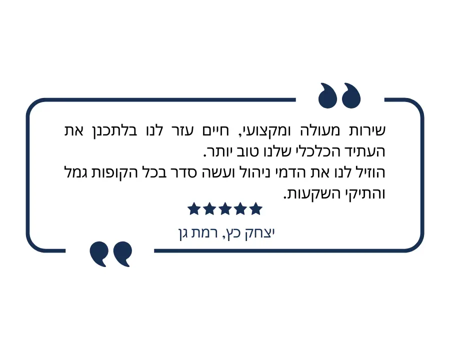 אני מזמין אתכם להצטרף אלי ולצאת לדרך עם בניית אסטרטגיית השקעות ותכנון פיננסי לכלל נכסי המשפחה.
