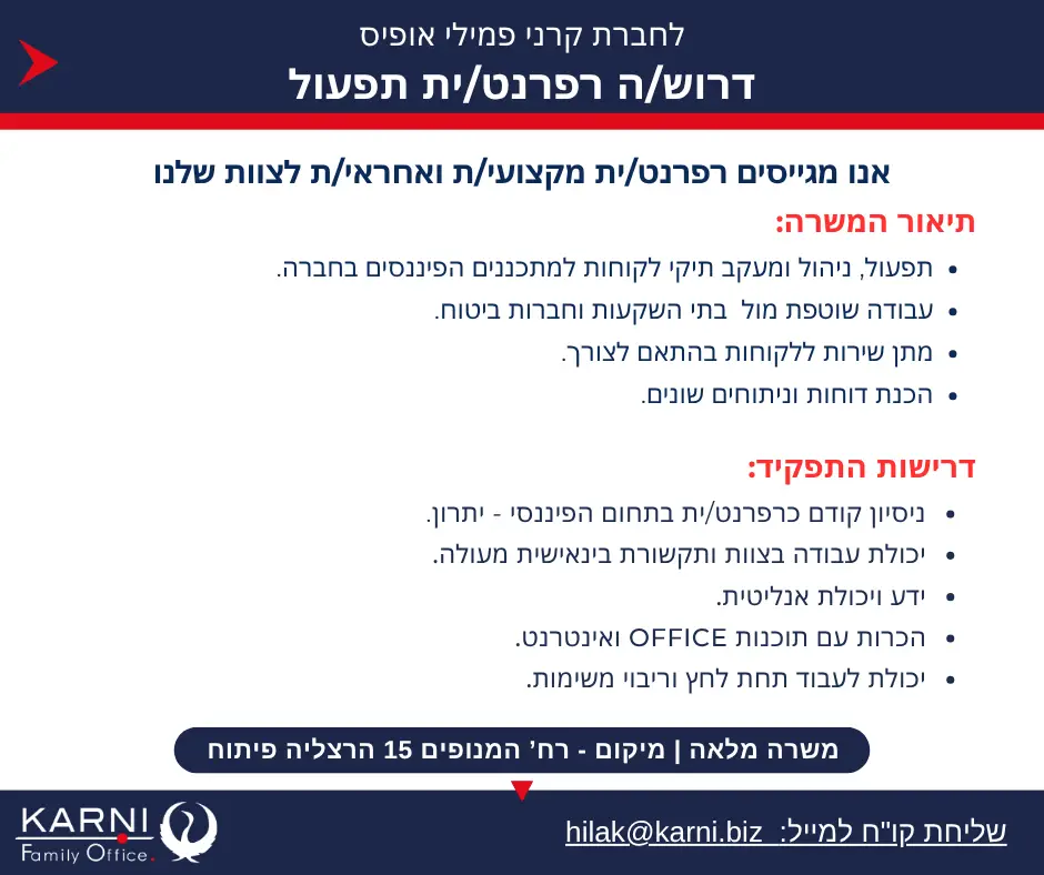 דרוש/ה רפרנט/ית תפעול